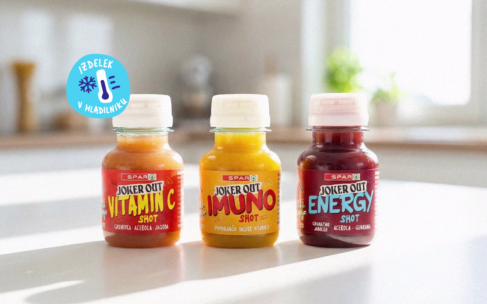 Prav zato so nastali vitaminski napitki JOKER OUT Energy shot, razviti v sodelovanju trgovine SPAR in skupine Joker Out. Gre za majhne napitke z intenzivnim sadnim okusom, ki jih lahko spijemo kar v enem požirku – na poti na predavanje, med učenjem ali pred treningom.